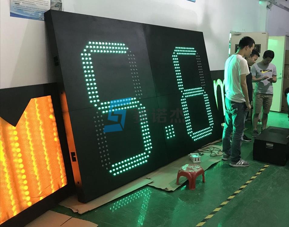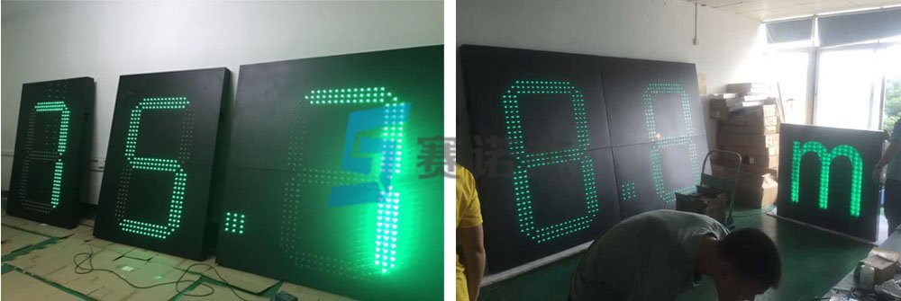 LED顯示屏是利用發(fā)光二極管構(gòu)成點陣模塊組成的顯示產(chǎn)品,LED模組顯示已經(jīng)非常成熟與節(jié)能,但考慮到項目本身成本預算與遠視距要求(1000m以上),結(jié)合我司鐵道信號燈的生產(chǎn)經(jīng)驗,我們設計了小密度8字屏+二次光學透鏡的方案,實際測試可視距離超過1200米。