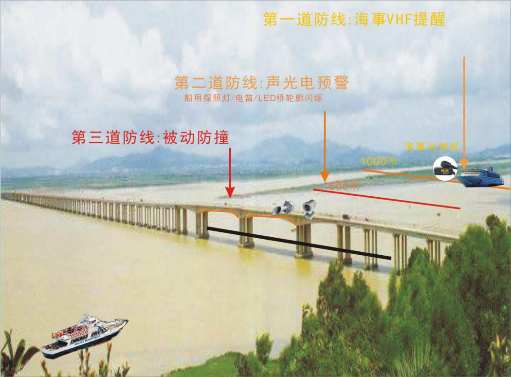 珠江是廣東省黃金水道,水系發(fā)達,航運繁忙,結(jié)合交通部航道信息化建設要求,為防止通航事故特別是船舶對橋梁碰撞安全事故發(fā)生,廣東省航道事務管理局組織相關(guān)技術(shù)力量,研發(fā)了橋梁防撞預警系統(tǒng),經(jīng)過6個月的建設,目前在珠江水系30座橋梁上安裝了該系統(tǒng)。經(jīng)過國內(nèi)權(quán)威專家組評估與審核,該系統(tǒng)由偏航檢測單元、超高檢測單元、水位檢測單元、聲光報警控制單元、LED實時顯示單元、系統(tǒng)平臺軟件六個單元組成。我司成功中標聲光報警控制單元、LED實時顯示單元子項目產(chǎn)品供應。