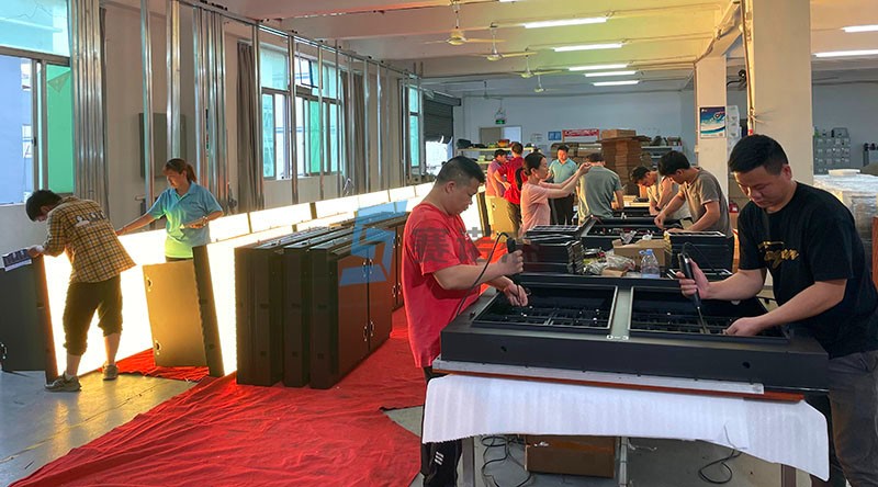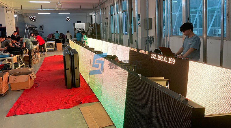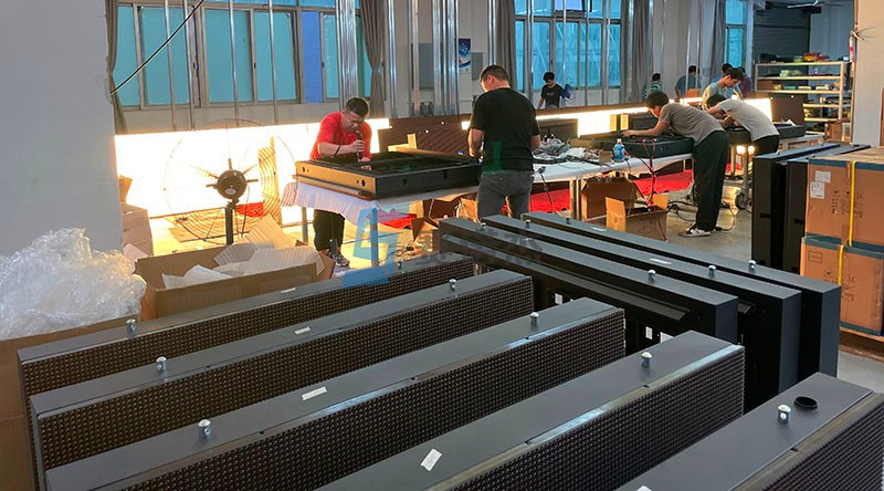 我司于4月10日收到泰州姜堰南繞城項目訂單,其中道路顯情報板屏P10直插三色全彩屏39套,P8貼片全彩屏8套。為滿足項目五一通車剪彩典禮,我司充分利用粵港澳大灣區(qū)電子產(chǎn)業(yè)供應(yīng)鏈優(yōu)勢與我司自動化柔性生產(chǎn)能力,僅僅只用12天就將產(chǎn)品交付。下面分享4月22日組裝車間的一些剪影。