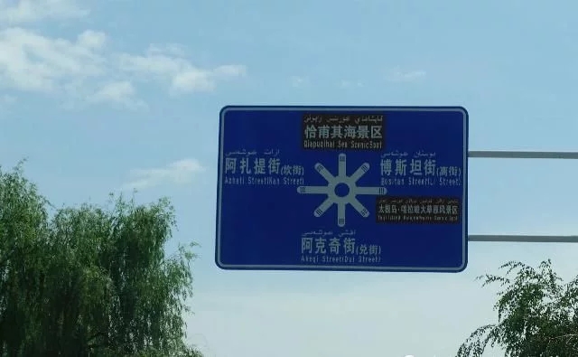 當(dāng)然之前沒有交通信號(hào)燈不代表沒有交通指示牌,畢竟對(duì)于一個(gè)外地游客來說,交通指示牌是到達(dá)一座城市最官方的指路標(biāo)志,只是在特克斯縣中心的指示牌并不能將八個(gè)方向的道路全部標(biāo)記在同一塊兒牌上,只能告知大概的位置。