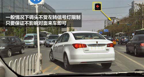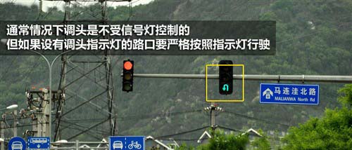 無論什么樣的路口,如果有專門的調(diào)頭指示燈,一律按照指示燈的指示行駛。
