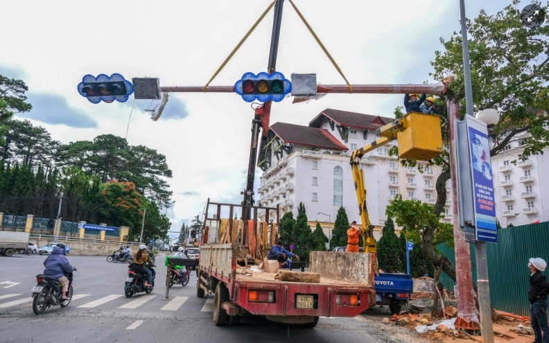 林同省大叻市人民委員會(huì)經(jīng)過多次咨詢專家和群眾,最近在市區(qū)多條道路上安裝了交通信號(hào)燈系統(tǒng)。