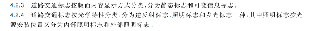 一是在交通標(biāo)志的光學(xué)特性上,保留了2009版的分類: