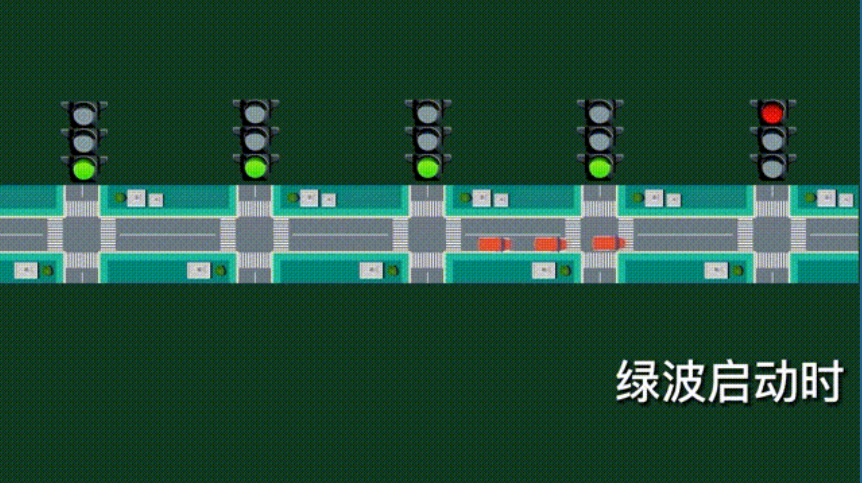 (1)綠波協(xié)調(diào),也被稱為“干線協(xié)調(diào)”或“綠波帶”。它通過對(duì)主干道交通線路上連續(xù)的多個(gè)路口實(shí)現(xiàn)信號(hào)聯(lián)動(dòng)控制,設(shè)定路口之間綠燈啟動(dòng)的時(shí)間差,使車輛在規(guī)定的綠波速度下行駛時(shí),可以連續(xù)綠燈通過多個(gè)信號(hào)燈路口。