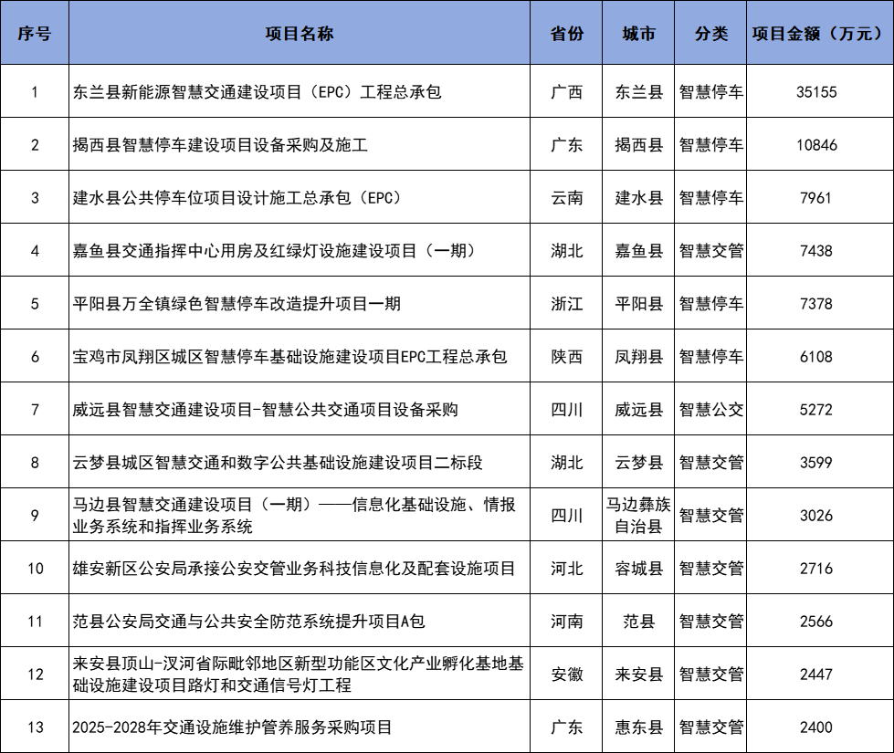 1-5月部分智能交通2000萬(wàn)及以上項(xiàng)目