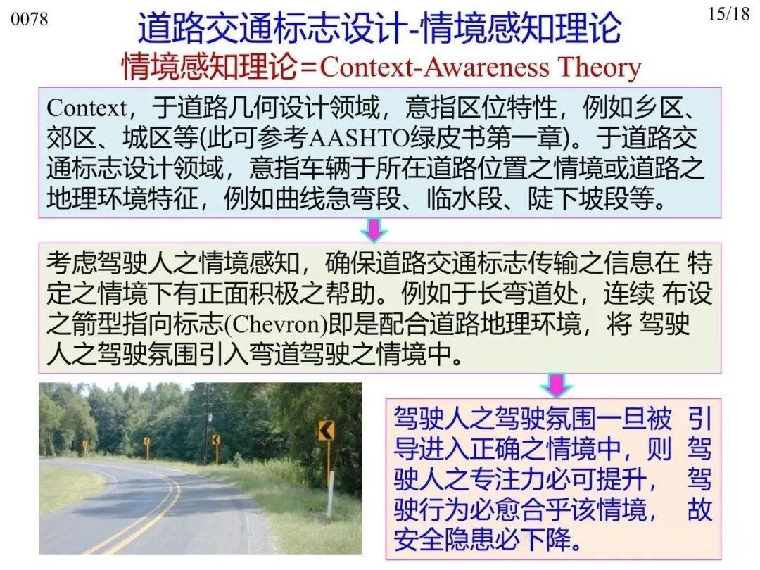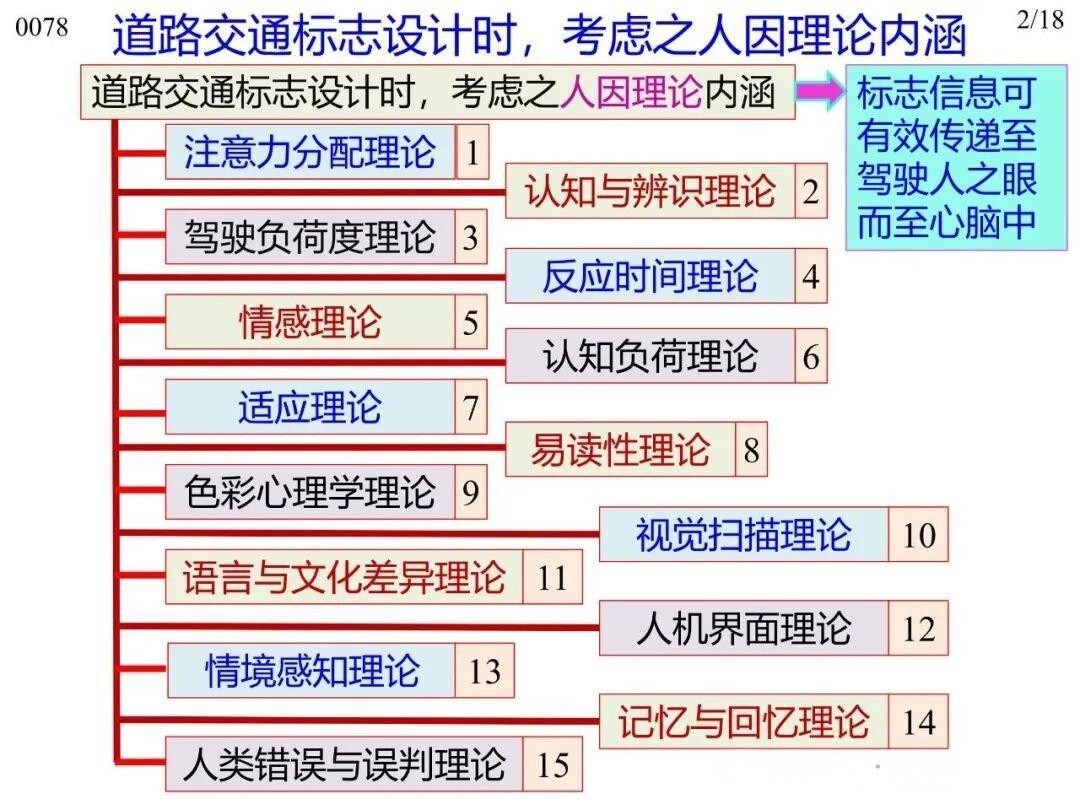 13)情境感知理論(Context-Awareness Theory):設(shè)計應(yīng)考慮駕駛?cè)说那榫掣兄?,確保標志傳輸?shù)男畔⒃谔囟ㄇ榫诚掳l(fā)揮正面引導的作用;