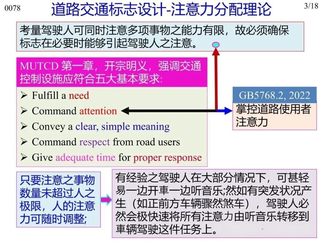 1)注意力分配理論:駕駛?cè)诵畔⑻幚砟芰τ邢?,要求標志能有效吸引注意?/p>