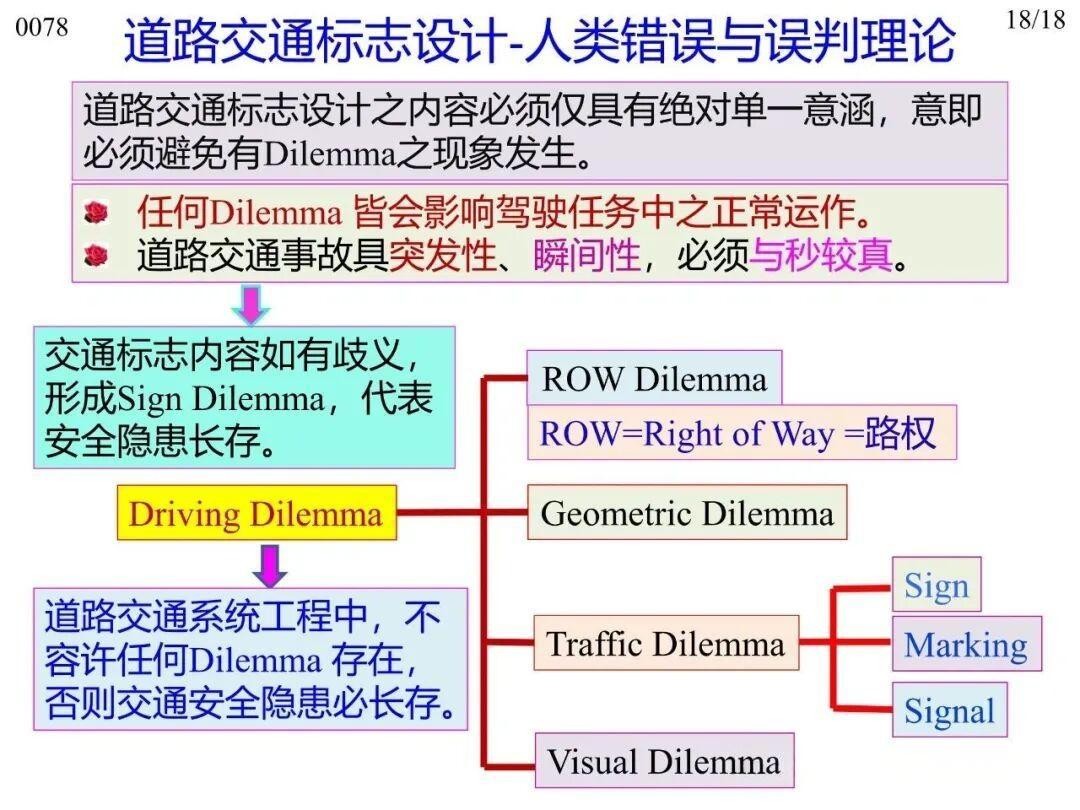 15)人為差錯與誤判理論:交通標志設(shè)計的內(nèi)容只應(yīng)有絕對單一的定義,避免讓駕駛?cè)水a(chǎn)生疑惑(Dilemma)現(xiàn)象。