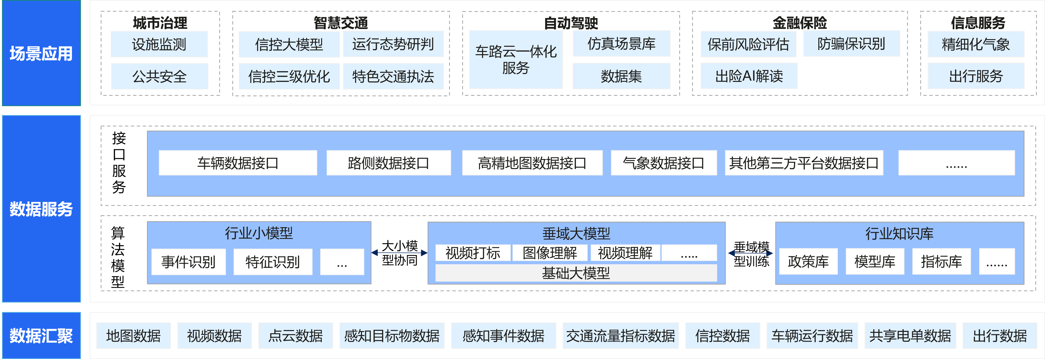 與傳統(tǒng)單點、封閉、分散的城市建設和管理相比,北京車網依托車路云一體化打造的“雙智”城市北京方案,實現了海量多源數據的統(tǒng)一匯聚、互聯互通,極大改善了相關管理部門的數據開放程度和利用效率。在此基礎上,通過大模型技術的加持,初步開發(fā)了城市治理、智慧交通、智能網聯、金融保險與信息服務五大類場景應用,大幅提升了細分領域管理和服務的顆粒度和靈活性。