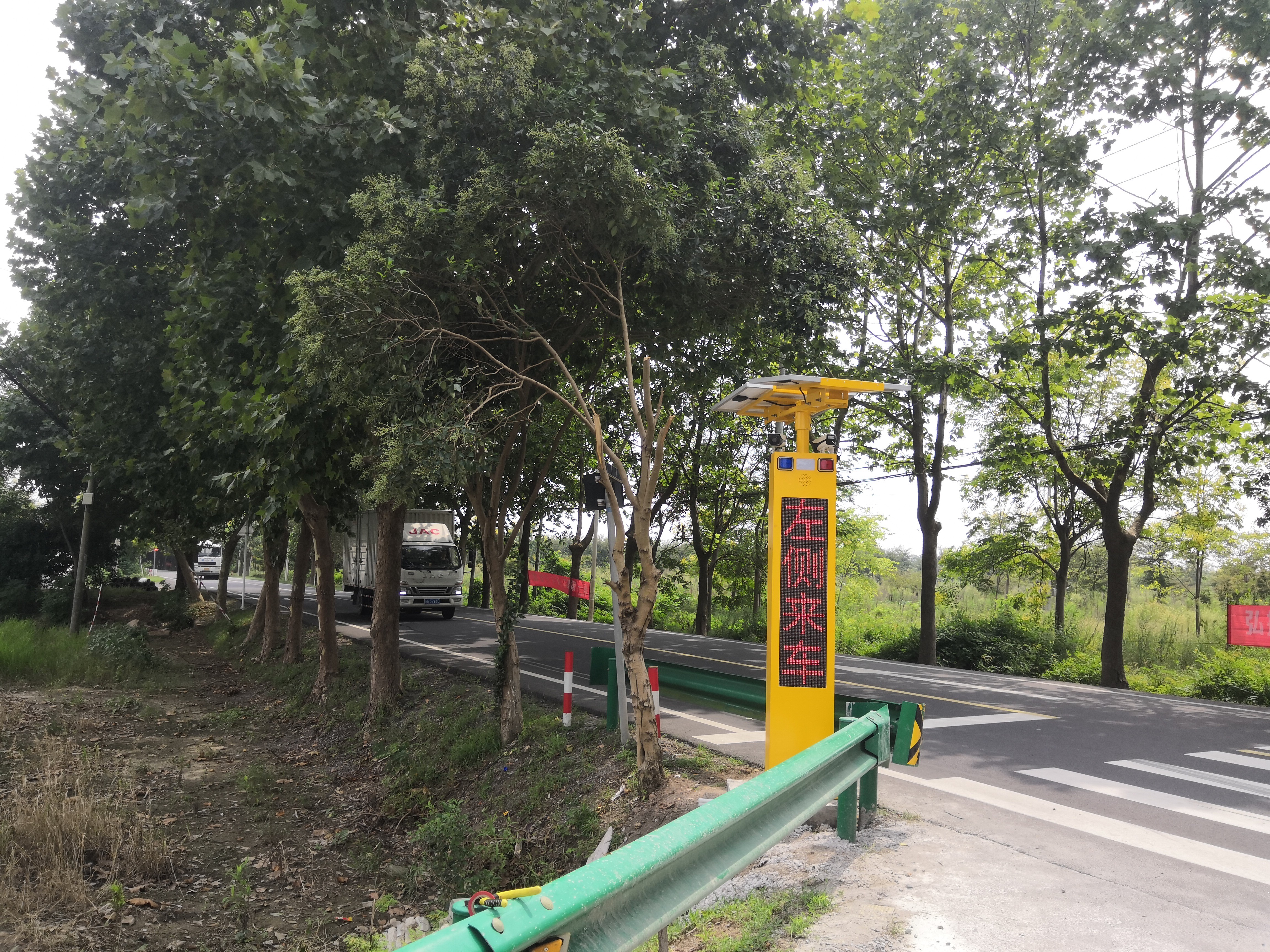 它的工作邏輯清晰而智能:在無車狀態(tài)下,設(shè)備顯示屏處于黑屏休眠狀態(tài)。一旦彎道一側(cè)檢測(cè)到車輛,本側(cè)設(shè)備的顯示屏立即啟動(dòng)。如果車輛未超速,屏幕將顯示綠色文字,如“注意彎道,車輛安全通過檢測(cè)區(qū)域”,給予駕駛員友好提示;倘若車輛超速,屏幕則會(huì)轉(zhuǎn)為紅色,并顯示“您已超速,車輛安全通行”的警告文字,并伴隨高頻閃爍,以強(qiáng)烈的視覺刺激警示駕駛員減速。更為關(guān)鍵的是,其預(yù)警能力是聯(lián)動(dòng)的。當(dāng)彎道一側(cè)有車時(shí),對(duì)向車道的設(shè)備會(huì)同步啟動(dòng),顯示紅色閃爍的“前方來車”字樣,讓即將駛?cè)霃澋赖鸟{駛員提前知曉對(duì)向來車情況,極大提升了行車預(yù)判空間。