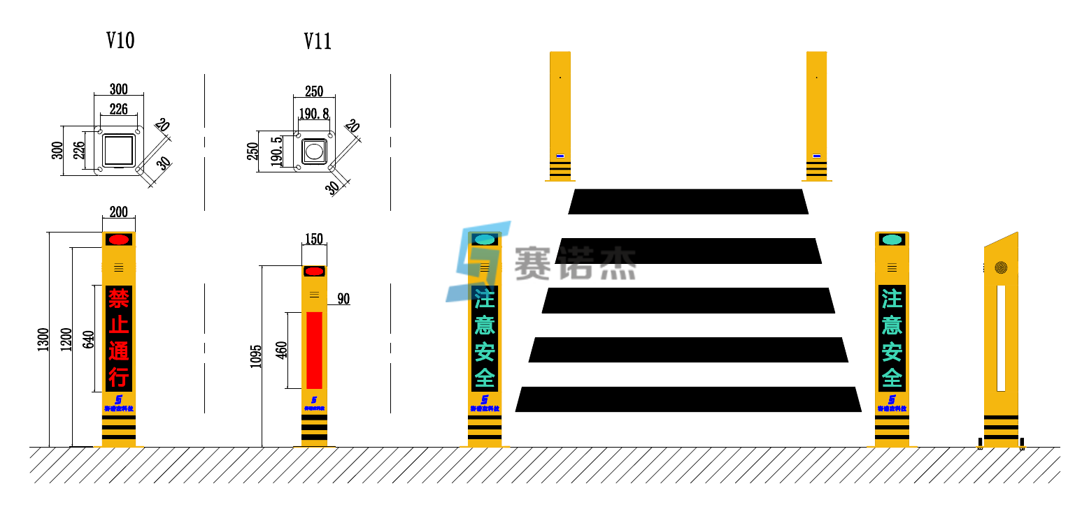 | SW-PCC-V(11) | 行人過街語音提示柱(LED光帶款),交通黃色,含主機/從機各一臺,配對使用,LED光帶顏色與紅綠人行燈顏色同步 |