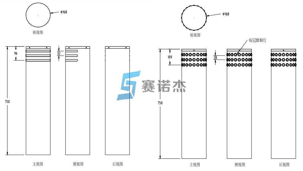 ★行人過(guò)街警示柱的控制盒常規(guī)配置為60W,可供8-10根警示柱使用;
